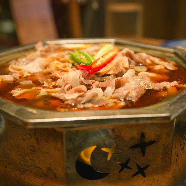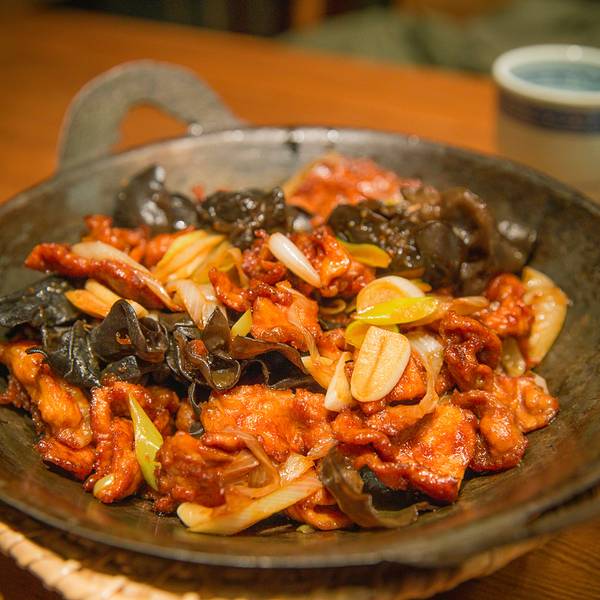 在恒山山脚住,这家必须强烈推荐,有2家店,我们吃的是一德街店。在浑源县城仿古街路口,附近是县城最繁华的商业区,店铺很古色古香,有包房有大厅。唯一不便是餐厅在二楼,没有电梯。只可惜只吃了一次,好多菜还想试,每份菜份量十足,一次吃不下几样。味道很合口味,好吃又划算。我们打车的时候,司机师傅也强烈推荐这家!免费餐前小吃,难道是我爬恒山太饿了?小吃都很好吃。红糖饼,非常好吃,强烈推荐!饼皮酥酥的,里面夹着一层红糖,外皮淡馅料的糖甜,中和了刚刚好。热着吃好吃,冷了吃也好吃,热着的时候红糖有点融化,热乎乎的香喷喷。冷的时候皮酥脆红糖硬硬的,吃起来是另一番风味。 店里还有另一款红糖美食——红糖馒头。我们堂食实在吃不下了,于是打包。但是,我们失算了,馒头必须热着吃,冷了就像嚼蜡。打包回酒店又不能加热,浪费了大好的馒头。浑源凉粉,浑源是这里的地名,这个凉粉是这里的特色菜。细凉皮加上醋汁和配料,更适合夏天吃,我们冬天来,感觉不如 山西 其他面食好吃。酸汤羊肉,份量十足,底下用火一直温热着。羊肉嫩,肉下面很多酸菜。过油肉,来山西必吃这道家常菜,就是云耳炒猪肉片,肉片挺嫩的。