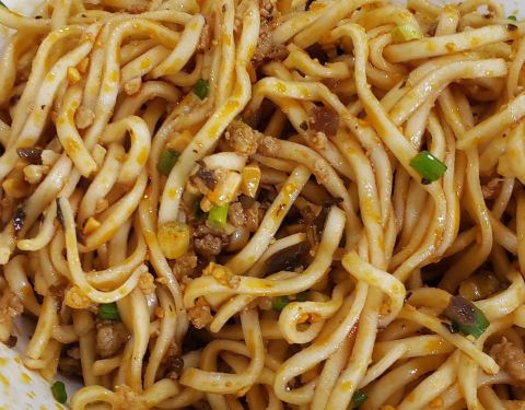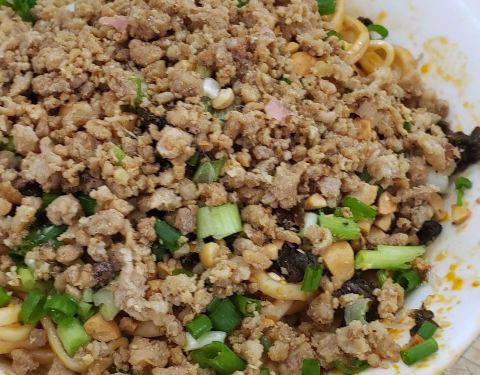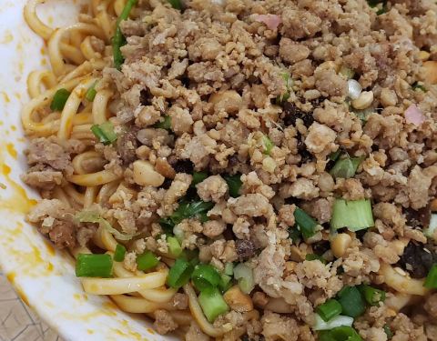 宜宾三大特产,李庄白肉,五粮液,宜宾燃面。李庄白肉已经打过卡了,味道还可以,但是也不惊艳,五粮液喝不起,最后来试试燃面,一看价格便宜,管他的,每种味道先来一碗,吃了下来还是燃面最好吃,红油和里面加的东西吃起来香的很,巴适。