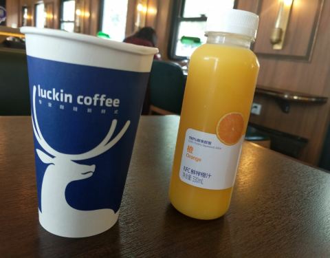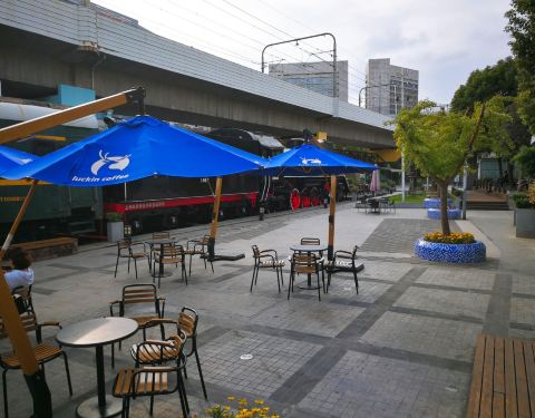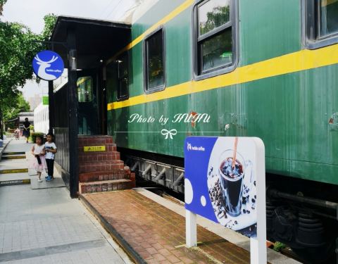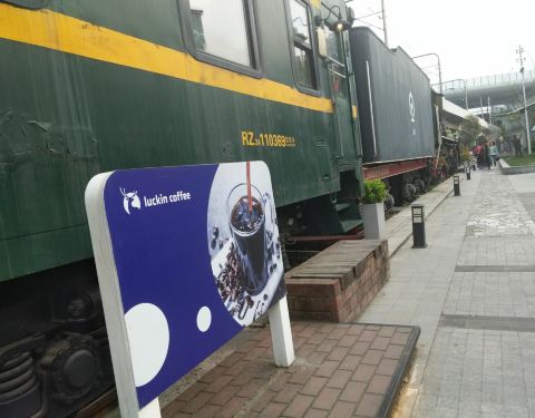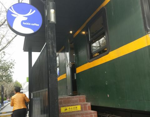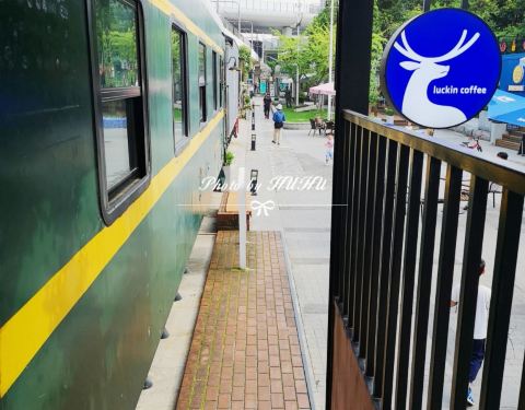 Luck in coffee 瑞幸咖啡 瑞幸咖啡发展很快,随处可见办公楼里电梯广告,请的也都是明星代言。 这家瑞幸比较有特色,绿皮火车的车厢作为咖啡厅使得边上一些品牌茶饮和咖啡生意都比不上他家。 外面天气比较闷热...