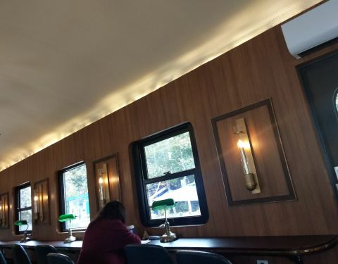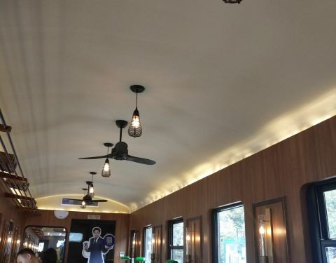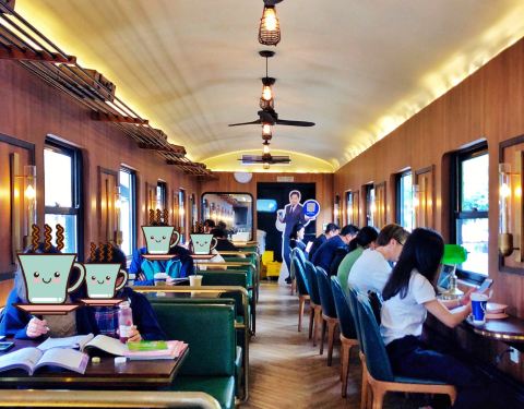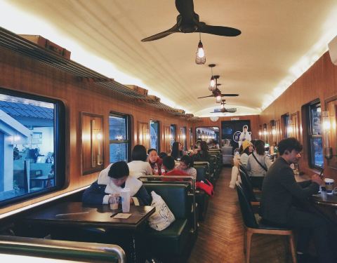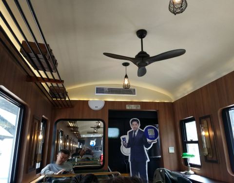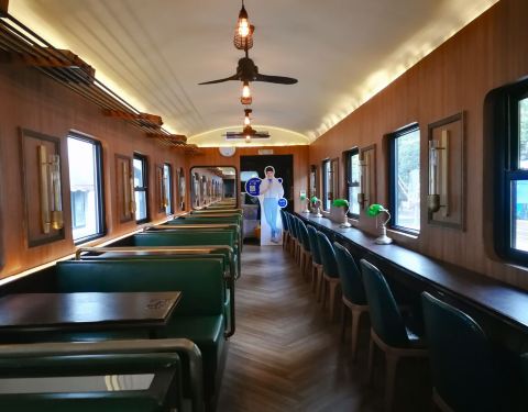 其实这里面积不大,只有一节车厢,还要有1/3被开辟出来做厨房,不过贵在创意出众,逐渐成了一个网红店