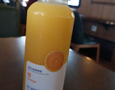 我又一次来到这家店里,因为有优惠券,因为要写稿子,买了日常我最喜欢的NFC橙汁,用优惠券后果汁价格实惠的,口感纯正的原汁,非浓缩还原。绿皮车厢里特有感觉,很怀旧的氛围,就是下午人有点多,阳光从窗户里晒进来有感觉。