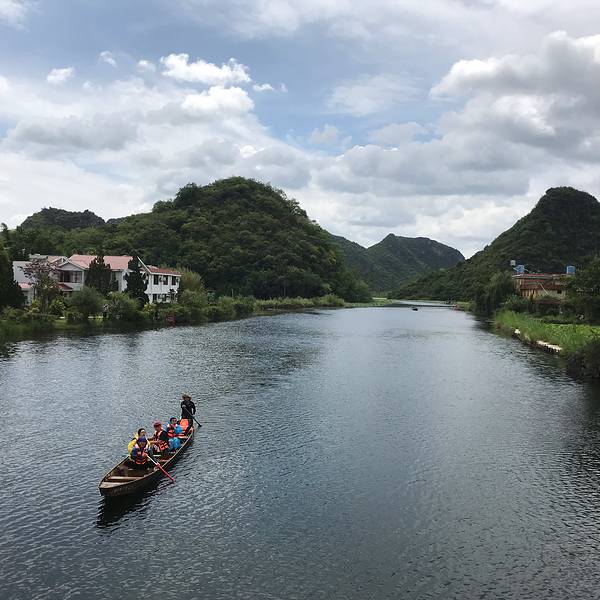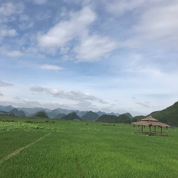 出高速后,还有几十公里才到普者黑,路况很好,相当于一级公路吧?需要收费,有ETC通道,旅游设施还是不错的。夏季的普者黑,到处都是绿意盎然的,还有大片大片的荷塘,荷花争相斗艳,含苞待放的,开得灿烂的,粉色的,白色的~~还有各种野花,一片生机勃勃的景象。天气凉爽舒适,适合打水仗~~到普者黑地界已是傍晚,刚好捕捉到一抹夕阳,映照着大片的荷塘,心情舒畅~~路遇一群回家的牛,车辆都很文明地避让,赞~~普者黑是典型的喀斯特地貌,跟广西的又不完全相同。从客栈后门出来,草塘,湖泊,远山,垂钓的人,画面和谐又美好~~我们追求的不就是远离城市,寻找这样的静谧之所嘛沿着荷塘边往天鹅湖方向、普者黑村方向走,沿路的风景,随手一拍都是一幅画,要是加上蓝天白云或者晚霞满天,就更美了~~图片没有经过任何处理,这样的效果,个人也是喜欢的。普者黑风景区随处可见这样的风景,由荷塘、湖泊、山峦或孤耸或延绵不绝组成。这排房子,就在一大片荷塘边上,基本都是客栈、餐饮店,在这里吃饭住宿,应该挺惬意的。荷花争相斗艳,整个风景区里面很多荷塘,夏天的普者黑,真的美极了~~比起上次春节来的时候,美上N倍啊第一次近距离观看到荷花的具体样子,那一圈金黄色,莲子的成长过程,都是那么美~~往来仙人洞村至普者黑村之间的马车,可以选择沿途的景点一站一站地乘坐,价格5--10元不等。我们心里是矛盾的,一方面觉得马儿走在石板路上,载那么重,特别是上坡的时候,马蹄会不会很疼呢?觉得人类很残忍,本该奔跑在泥路或者草原上的马儿,来到了现代化的道路,现代化的世界,是不是不够开心呢?另一方面,觉得村民靠马车拉客,挣的钱也不多,还很辛苦。最终,我俩决定,还是走路吧……仙人洞村的石碑~~你在桥上看风景,船上的人在看你,O(∩_∩)O哈哈~从导游图上可以看到,普者黑村与仙人洞村距离不远,但是没有路直达,要么环游一圈,要么搭船。青龙山上拍下的普者黑风景区部分,这是后面拍的青龙山上拍下的普者黑风景区部分,这是正面拍的仙人洞村,旧房子,很少了,环游了一圈,只看到这家还算保持得比较完好的,就在三线家客栈斜对面,门口挂着腊肉,好不好吃呢?~~很喜欢这样的田园风光~~芦苇里面,有人在钓鱼哦,这个环境下生长的鱼儿,应该很好吃~~