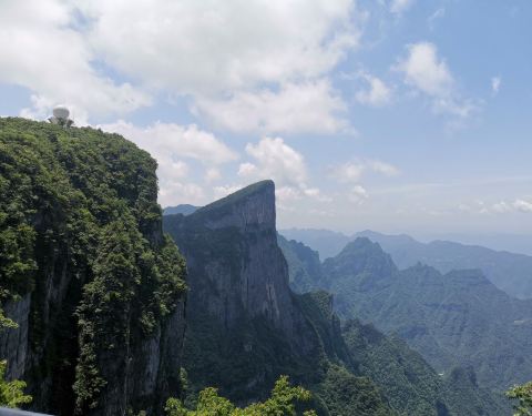 天门山悬索桥横亘于山顶西线鬼谷栈道附近海拔1500米的峡谷之间,全长150米,桥面宽2.5米,载重量超100吨,总投资160万元,是湖南省首座特大悬索桥。悬索桥建于2005年,历经艰险的修建过程,于2007年正式对外开放...