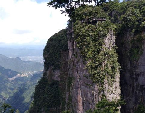 天门山顶有着覆盖率达90%的原始次生林,其间古树参天,藤蔓环绕,青苔遍布,石笋、石芽举步皆是,处处如天成的倒立盆景,宛如仙境,故有“空中盆景花园”之称。1992年7月,天门山被批准为国家森林公园。天门山属于典型的喀斯特岩溶地貌,溶丘、钟乳、石林遍布,树藤、野花、野果交相缠绕,整体犹如一个巨大的天然盆景,美不胜收。林中生长着珙桐(鸽子花)、银杏、鹅掌楸等国家珍稀植物,中草药达200多种,较珍贵的有黄连、天麻、血藤、七叶一枝花等,且盛产各种菌类,除开常见的麂子、狐狸等动物外,还有古人藏于袖内作为灵物的米猴以及天门山吉祥灵兽天门瑞兽。据说,山间时常有“飞狐”出没,经常在有月亮的晚上在山头嚎叫并且还有如蝙蝠一样的翅膀可以飞翔。