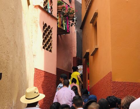 位于瓜纳华托老城区的西北,从圣母教堂走过去大概十分钟左右,本身其实只是一个很窄的小巷子,由于两个楼距离很近,甚至两边的阳台上都能相互接吻,据说当地有一个爱情的传说,不过似乎这里是因为coco而广为人知。