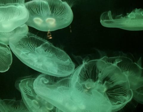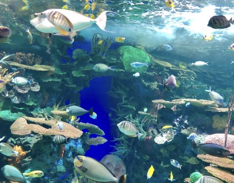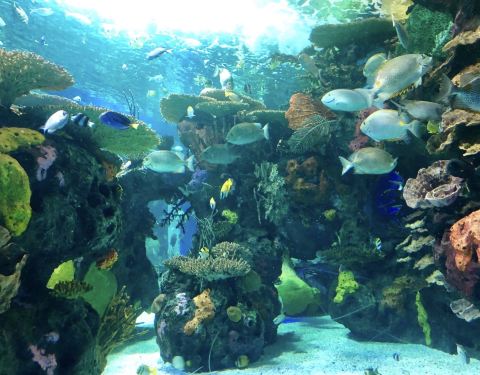 ...,你甚至可以自己霸占一个玻璃水族箱,把脸贴在上面去观赏这些可爱的海洋小动物,所以我自己觉得很好