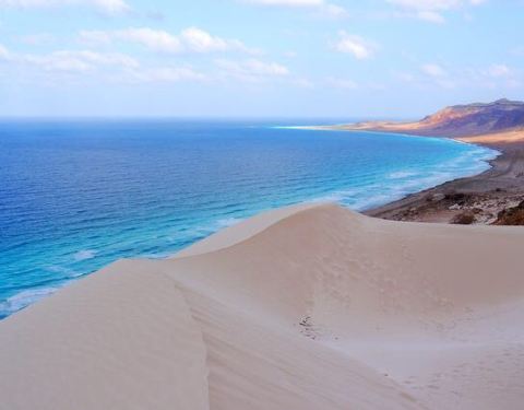 索科特拉岛位于阿拉伯半岛以南,阿拉伯海与亚丁湾的交接处,属于印度洋群岛的一部分,于2008年被列入直接自然遗产。看海景是不是很美呢?还有龙血树很有特点哦