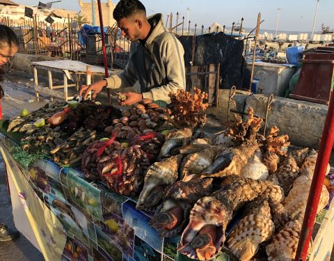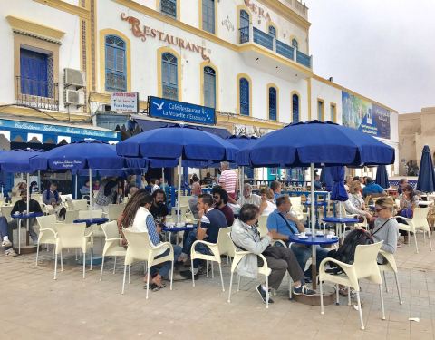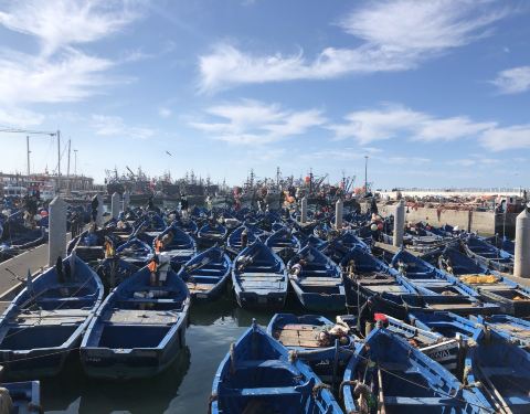 索维拉渔港是一处非常繁忙的海港,码头上停靠着大大小小蓝色的渔船。每天渔民会分两次将新鲜捕捞的海产品拿上岸来售卖。来此光顾的游客非常的多,海港的边上有许多的餐厅,大家可以将买来的海鲜拿去加工,既实惠又美味,而且特别的新鲜。