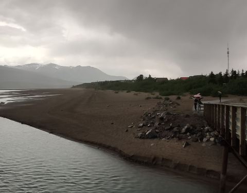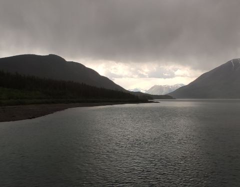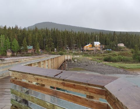 班奈特湖是阿拉斯加斯咖格威火车到底的地方。造访时天气不佳,阴沉地下着小雨,周围山和湖都是暗暗的,我们走得快了些没人跟我们一起,有那么点荒凉的感觉。湖边有座小桥,木板桥面。