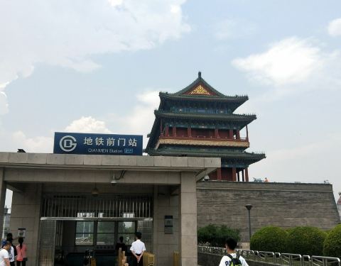 是大前门的标志性建筑。以前这里坐地铁2元随意坐,如今按里程涨价了,故俺全部骑行