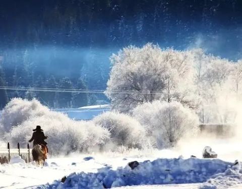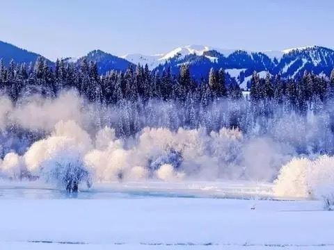 巩乃斯,原意为“绿色的谷地”,巩乃斯草原四季景色俱佳,而以春色最佳。到了冬日,巩乃斯这里人烟稀少、与世隔绝,有着一种超凡脱俗的水墨意境感,沉浸其中,不由得让人着迷。氤氲飘散的雾气,模糊了天与地的界限,常青的杉树林也在一场大雪后,一夜白了头,带着一种孤独寂寥的美