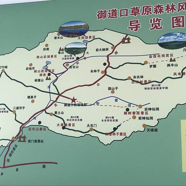御道口牧场位于承德市围场县坝上地区,景区内有原始草原70万亩,湿地20万亩,天然淡水湖21个,泉水47处(多为矿泉),河流13条,滦河的发源地。包括:大草场景区、御道口牧场部、白桦林景区、月亮湖景区、风电景...