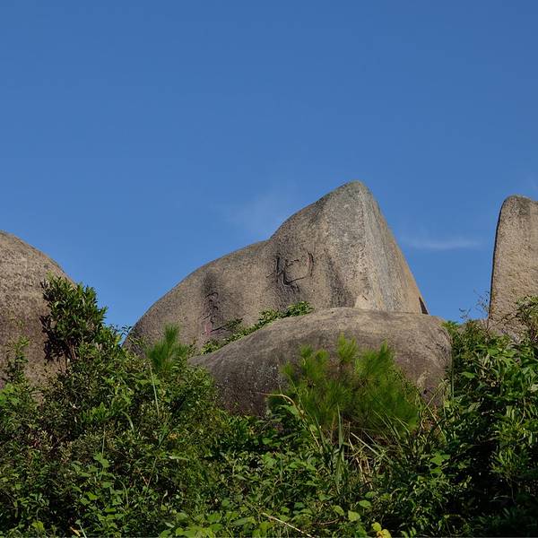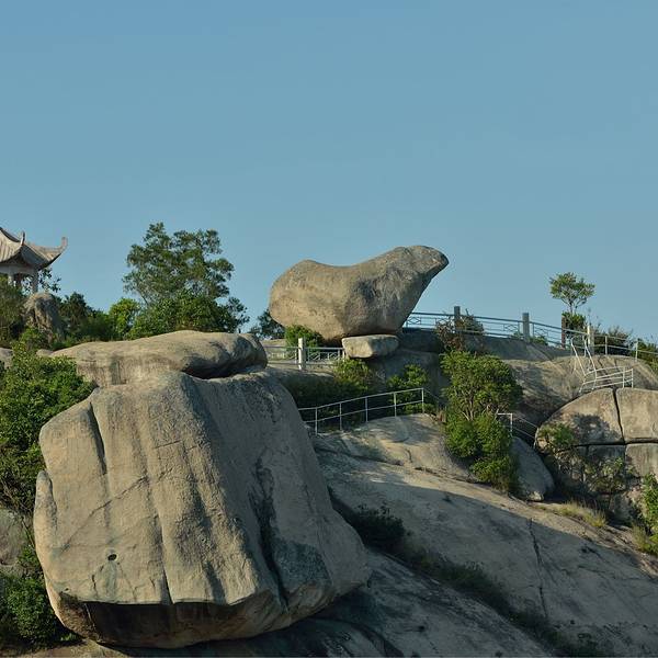 知海亭和金元宝,金元宝是斗姆岛上的一块奇石,因外形酷似古元宝而得名斗姆石城