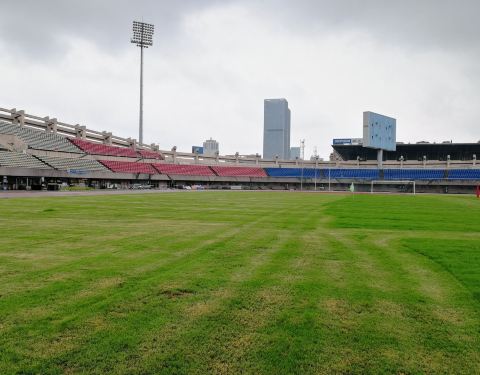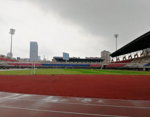湘潭市的体育中心,场地还是不错的,平时用来做高尔夫练习场,但是场地还是很可以的。狗牙根草坪,比较软,踢球感觉不错。湘潭体育中心还有一个特点就是开阔,空气流通比较好,看球人容纳两万。