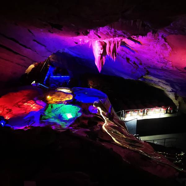 距离丰都县城十几公里,山路上兜兜转转,不过真的值得一看。世界级奇观,塔珊瑚群,石旗王,直径达4米、冰清玉洁的地盾,2.5米的鹅管。这些宝贝每一百年仅生长三厘米,可见长在深山无人动的好处了。