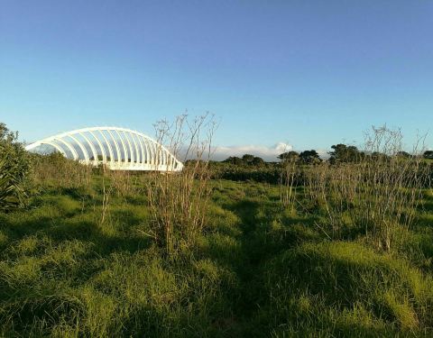 一座白色形似鱼骨桥,简洁现代。位于海边,附近步道完整,可以随性漫步,沙滩观浪,也可以于桥上远眺雪山。周围绿草遍野,空气清新。