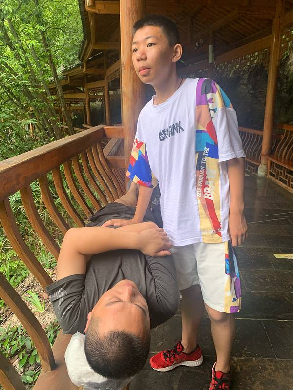 我们走到景区最里面准备坐船,正赶上人家中午休息,那我们也休息一会吧,孩子们玩,我家这位已经开始练功夫了开始睡觉了