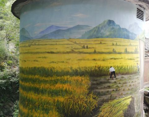因为改变了行程,上车之后就开始跟叔叔谈租一整天车的价格,可能是我们给的价格太低了,然后他这车开的就像要飞起来了一样,那叫一个快,我这晕车的毛病都快给甩出来了,哈哈哈。不过叔叔一路上对我们还是很好的,很热情。 开车前往碧坞潭景区,要翻过整个山头,路上司机叔叔给我们摘的野草莓,直接摘下来就能吃了,味道酸酸甜甜的,感觉泡酒的话应该很好喝。关键是颜值相当高,太好看了。关于“碧坞龙潭”这个名字,简直要笑死了。司机叔叔有当地的口音,我们一直以为他说的是“BO龙潭”,后来就问他是哪两个字,我竟然理解成了“鳖乌龙潭”,还说怎么会有景区取这么个名字,直到我们看到指示牌,才知道是“碧坞龙潭”,哈哈哈。看到这个牌子,最后那几句“三五成群的游人在风景中奔放着、鲜活着”,原谅我真的忍不住笑了好半天,然后时刻提醒自己,一定要奔放 ,一定要鲜活起来,哈哈哈。这个景区之前是收费的,现在不知道算不算是废弃了,感觉已经没有人管理了。 因为我不太喜欢爬山,所以感觉在景区里面没什么逛的。反而是我们出来之后,村子的墙上有各种涂鸦,我还是比较喜欢这种的,感觉村子是可以好好逛一逛的。从这里出来,开车大概十几分钟,就可以看到仙潭乐园的稻草人了。