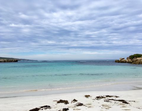 汉森湾野生动物保护区 Hanson Bay Wildlife Sanctuary 位于弗林德斯蔡斯国家公园和凯利山保育公园中间,是观赏袋鼠岛野生自然生态的理想天堂,很容易就与考拉、袋鼠、塔玛拉沙袋鼠、负鼠、针鼹鼠等最具澳洲特色的野生动物不期而遇,还可以参加有导游带领的“90分钟夜行动物发现之旅 ”。不仅如此,保护区内还提供了 6 栋独立的海景小屋,距离可以游泳、钓鱼等的汉森湾海滩 Hanson Bay Beach 只有百米来远。我们没住海景小屋,不过在驱车前往弗林德斯蔡斯国家公园途中,顺便拐弯去汉森湾海滩转悠了一小会儿,真是个清静悠闲的海滩,就像是住在这 6 栋海景小屋里的人的私家海滩。在这里休闲垂钓可得遵守垂钓规则,各种鱼类的可垂钓尺寸、数量,以及不可垂钓的鱼类等,都有详细的规定,违反者根据情节轻重,最高罚款达2万澳刀呢!喜欢徒步的,还可以从这里远足来回约 18 公里,穿过原始丛林,以及丛林中的两个泻湖,去往凯利山保育公园 Kelly Hill Conservation Park 内的凯利山洞穴 Kelly Hills Caves。图1-4:汉森湾海滩 Hanson Bay Beach;图5:汉森湾海滩海湾内侧;图6:汉森湾海滩垂钓规则示意图;图7:徒步前往凯利山洞穴示意图。