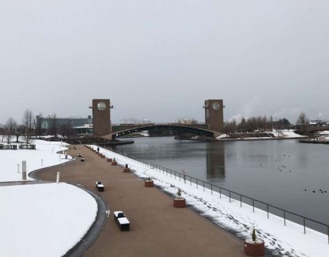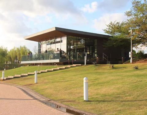 路过富山,换乘时间不多,就只去了运河环水公园。这里有据说是日本最美的星巴克