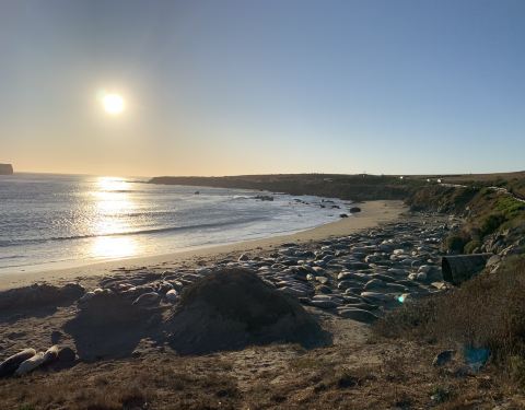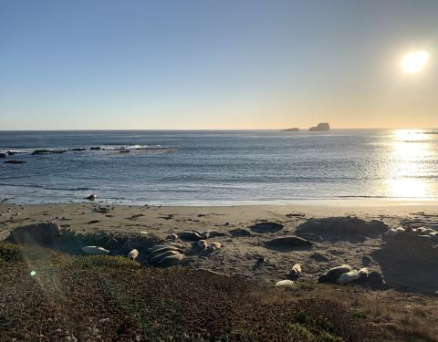 这个景点建议一定要停下来,看一看。 真的很有趣,海滩上齐刷刷的躺满了胖乎乎的海豹,其实我也不知道是海豹还是海狮。 反正就是那种憨憨的没有腿的,蠕动着走的海洋生物。 它们都很悠闲的躺在海边的砂糖上,密...