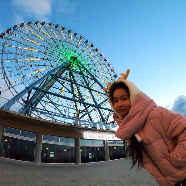本来想坐摩天轮的,淡季晚上居然不开… 。风好大好大,吹的头疼。四周都是蓝天,就头顶乌云密布