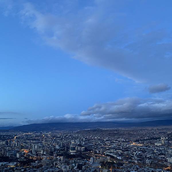 今日最后一站,Mtatsminda Park,从地图上看离我们酒店超级近,直线距离只有200米,开车要20分钟…需要一路盘山公路绕上去 这里也是看夜景的最佳地点之一,公园内的设施就类似于上海 的欢乐谷、锦江乐园,但现在是淡季,几乎没有人,很多游玩设备都关了,显得很荒凉风好大好大,吹的头疼看见一位外国女勇士,这个天露腿,而且还谈笑风生,完全不抖,是真的不怕冷啊!佩服佩服四周都是蓝天,就头顶乌云密布本来想坐摩天轮的,淡季晚上居然不开…其实天再黑一些拍夜景更好看,但风大的实在站不住了,只能匆匆拍几张就走了,非常时期,万一吹的感冒发烧,被隔离怎么办