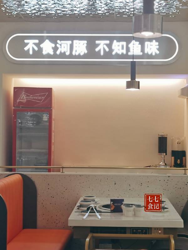 门口可爱的河豚卡通好吸引眼球呢?一进门水缸里面养着活的河豚,店里橘黄色与金色设计凸显简洁质感,店里随处可见河豚元素卡通形象,还有QQ的河豚抱枕,让美食与休闲生活完美呈现。