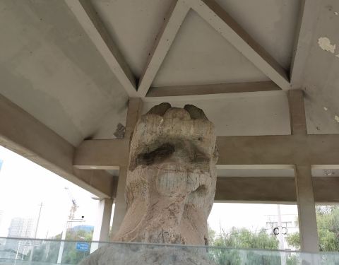 陈朝时代的一只天禄一只麒麟保护在玻璃房里,几年前的街心小公园如今被杂草包围,面目全非
