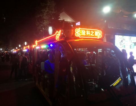 夜晚的夫子庙步行街流光溢彩,灯火辉煌,充满了古典色彩和金陵风光。人头攒动,商贩叫卖都成为了一大亮点夜晚的夫子庙步行街流光溢彩,灯火辉煌,充满了古典色彩和金陵风光。人头攒动,商贩叫卖都成为了一大亮点。游船在河中划动,霓虹倒影点点。在铺满青石板路上走走,仍能感受到曾经"六朝金粉地"散发的十足活力。