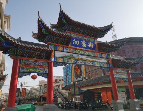 综合步行街就在我住的酒店旁边,这边虽然看起来有一个牌坊,看起来比较的大气,但是其实里面并不算特别大,最主要还是卖宁夏当地的一些特产为主,当然最多的店铺就是卖枸杞了。