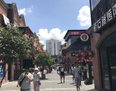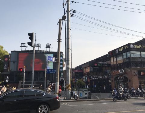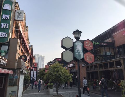 这里是上钢新村改建的,都是门面房,改造成饭店、奶茶店、面包店等,现在这里很热闹的,有时会有集市,卖些工艺品什么的,这里的饭店吃饭不贵。,很实惠。