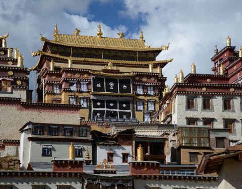 松赞林寺藏宝展览馆应该就是松赞林寺内的几个大殿,扎仓,吉康二个大殿位于寺庙最高处,为五层藏式结...
