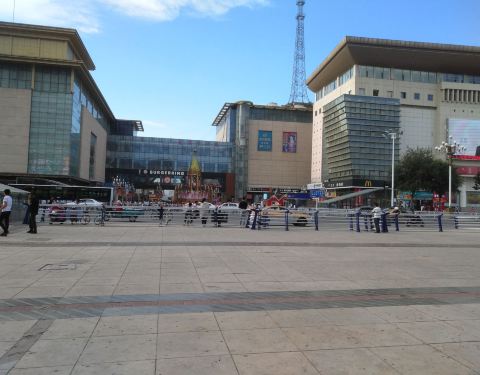 鹿城新天地是包头的一个商业区,有地标性建筑,周边是一个宽阔的广场,四周布满了商业大厦,有包百时...
