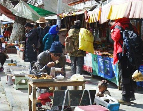 头顶着日头太晒了,只能稍微逛了一下,开店的主要是卖一些配件、藏饰、虫草、餐馆有几家,没啥小吃