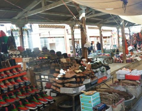 日喀则市中心的“喜格孜步行街”,在当地很有名气的,相当于商贸一条街,就在扎寺附近。 路口是一个藏式风格的大牌坊,说是步行街,其实小车都可以进进出出,毕竟这边都不是人流密集之地。 头顶着日头太晒了,只...