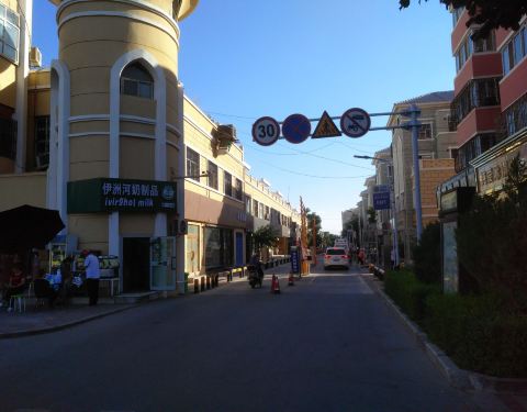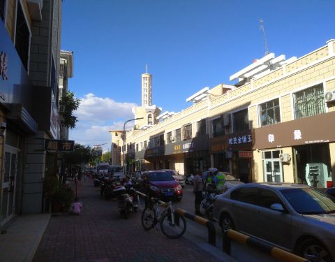 大十字购物街位于哈密市中心附近,里面有两条平行的街道,长有三百多米,道两侧布满各种商店,有餐馆,鲜奶店,服装和化妆品店等,但到这里购物游览的游客并不是很多。