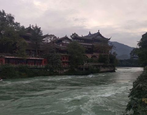 十几年前去过一次都江堰,大坝很雄伟,很难想象这是两千多年前的水利工程。这次再来,夜景漂亮多了,亭台楼阁,还有热闹的街市可以逛逛,真是惬意。