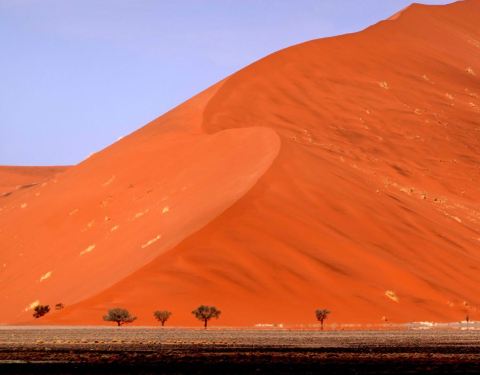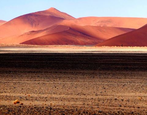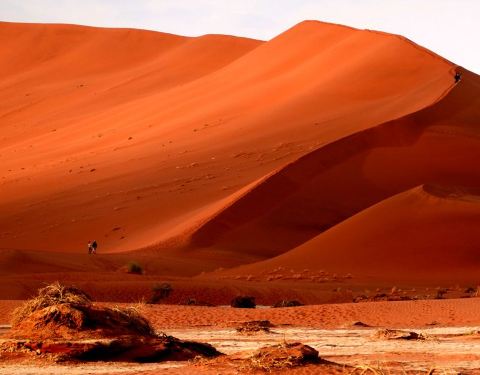在这片瑰丽的红沙漠中,精髓就是地球上最大最古老的沙丘,45号沙丘,以及充满了荒凉之美的死亡谷,到了夜晚,漫天繁星铺天盖地笼罩着亿万年前的红沙漠,仿佛能够听到远古的声音,这里的体验终身难忘。日出日落是这里最迷人的时间,有条件的话可以住宿在园区内的酒店,因为只有一家酒店,否则关门时间是在日落之前,住在外面的话就没有办法等到45号沙丘的日落景观,与最佳的光景擦肩而过就太可惜了,45号沙丘因为距离景区门口45公里而得名, 有“世界最高的沙丘”、“地球最美的沙丘”之称。高近325米,因为优美的外观和线条,已成了纳米比亚红色沙漠的名片,登上《国家地理》的封面而一举成名。日落那一刻,你会发现沙丘红的似乎不那么真实。太漂亮了。 随缘看世界