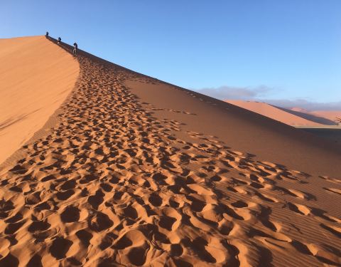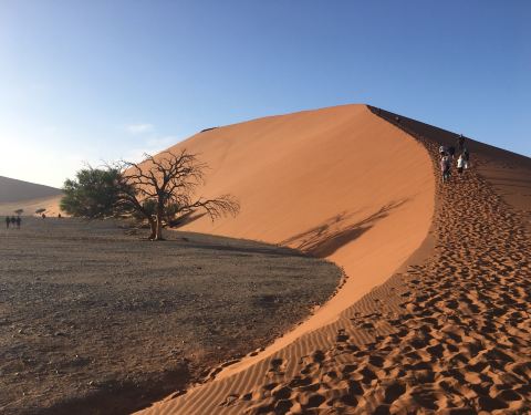 Dune 45是纳米比亚最有名的景点之一,这座红土沙丘在太阳下闪烁光芒,吸引世界各地观光客来朝圣,这里因为当地交通不方便,跟团或几个朋友包车自由行是最方便安全的。