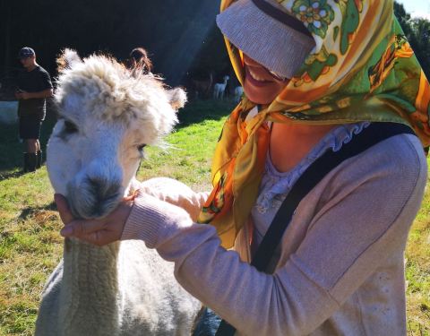 羊驼是新西兰的国宝级动物了,也可爱之极,易于亲近。当然看你怎么同它们亲密接触了。抚摸颈内侧它很舒服也很柔软,否则就当心它吐口水了。