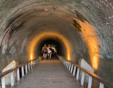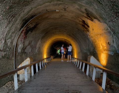 从高雄的灯塔和旗津炮台下了山,真是蛮累的,按着码头上拿的免费导览图,离两个景点较近的这个景点,星空隧道,现在好多城市都有星空隧道,而在旗津半岛上的这个隧道依山而建,山海相连,从山这边入口,出了隧道...