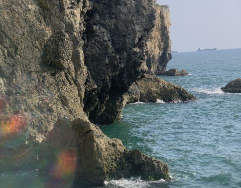 从高雄的灯塔和旗津炮台下了山,真是蛮累的,按着码头上拿的免费导览图,离两个景点较近的这个景点,星空隧道,现在好多城市都有星空隧道,而在旗津半岛上的这个隧道依山而建,山海相连,从山这边入口,出了隧道看到大海,真是豁然开朗
