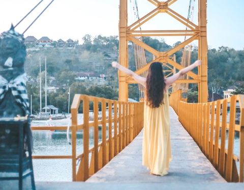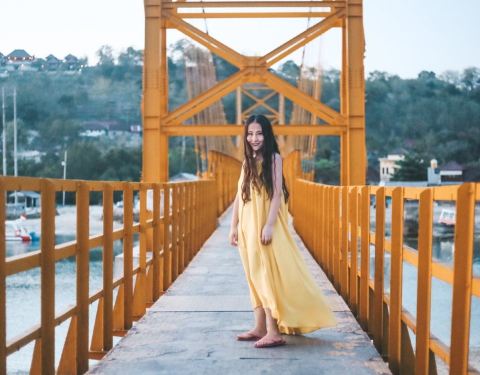 黄桥在蓝梦岛上,只是为了拍照。地接跟我们说也不明白这为什么是个景点,只是为了拍照,大家都来。哈哈哈哈。其实这里有点危险,因为桥很窄,上面有来回两个方向的摩托车自行车,一定要注意安全。蛮特别的黄侨是...