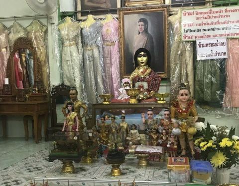 这里面供奉的是在泰国家喻户晓的鬼妻,关于这个人物,我自己不够了解,所以就只是大概看了一下,陆陆续续的都会有游客或者本地人进来跪拜。