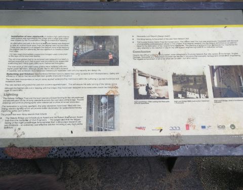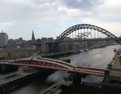 在泰恩河上不到一英里有六座桥,建于不同年代,满足时代需求。这座桥是上下两用,上层火车,下层汽车,可以跑双层公交车。有许多海鸟在这里,所以不时会有天粪掉下来,就连桥头的广告牌也有很多。从桥上可以看到...