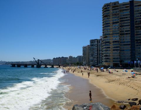 这是复活节岛上一处非常漂亮的城市海岸,瓦尔帕莱索海的住宅区就建在海滩的边上,绝对是一线海景房,景色非常的优美。沙滩上聚集着许多的游客,有的晒太阳,有的冲浪,还有的骑车,徒步,十分热闹的一处海滩。