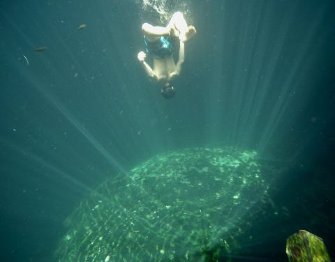 水质很棒,有太阳的情况下,光线很美。可以从洞口直接跳入洞中,也可以攀爬梯子下去,更有秋千可以荡