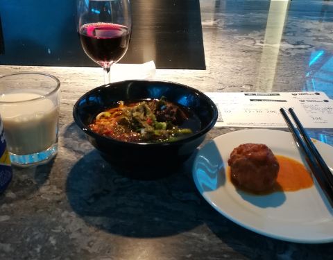 MORE PREMIUM LOUNGE (T2) 4 层,pp的APP指示还是很明确的,贵宾厅不是很大,人流量比香港少多了,吃的还不错,有牛肉面,虎皮鸡蛋还有豆腐丸子,喝的饮料补充也挺及时的。酒水选择不是很多,红酒倒是一般般。