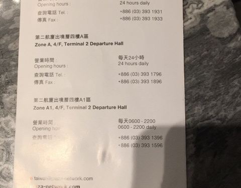 桃园市航站南路9号台湾桃园国际机场第二航厦出境区四楼